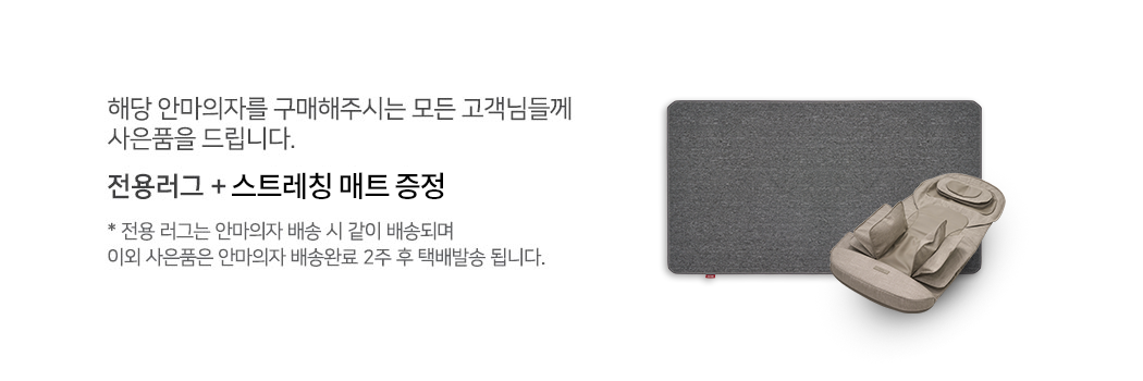 | AS안내 | 사용상 이상이 있을 경우 제품을 분해 혹은 수리하지 마시고 A/S 접수해주시면 친절하고 신속하게 처리하여 드리겠습니다. 품질 보증 기준 A/S 규정 안내 ■ 안마의자 / 리클라이너 A/S 접수 연락처 : 1588-8543 ■ 소품마사지기 / 소형가전 등 A/S 택배 발송 안내 A/S 절차 안내 ■ 공통) 유상 A/S 정책 |