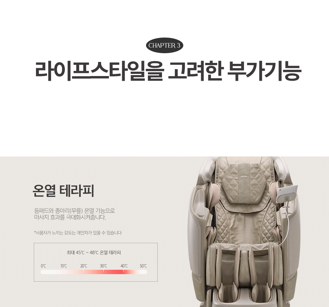 | AS안내 | 사용상 이상이 있을 경우 제품을 분해 혹은 수리하지 마시고 A/S 접수해주시면 친절하고 신속하게 처리하여 드리겠습니다. 품질 보증 기준 A/S 규정 안내 ■ 안마의자 / 리클라이너 A/S 접수 연락처 : 1588-8543 ■ 소품마사지기 / 소형가전 등 A/S 택배 발송 안내 A/S 절차 안내 ■ 공통) 유상 A/S 정책 |