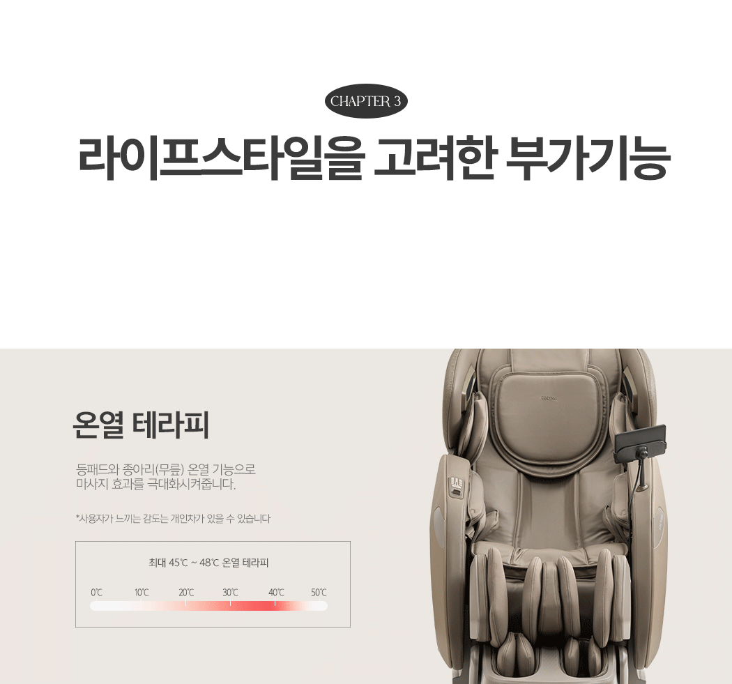 | AS안내 | 사용상 이상이 있을 경우 제품을 분해 혹은 수리하지 마시고 A/S 접수해주시면 친절하고 신속하게 처리하여 드리겠습니다. 품질 보증 기준 A/S 규정 안내 ■ 안마의자 / 리클라이너 / 마사지소파 A/S 접수 연락처 : 1588-8543 ■ 소품마사지기 / 소형가전 등 A/S 택배 발송 안내 A/S 절차 안내 ■ 공통) 유상 A/S 정책 |